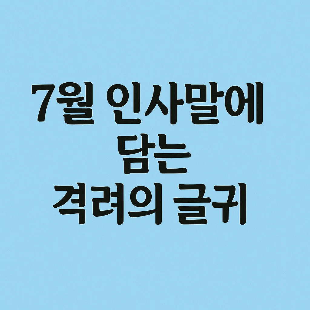 7월은 한 해의 중간입니다.7월 인사말에 담는 격려의 글귀,지친 마음에 조용한 응원을 건네기 좋은 시기입니다.무더위 속에 전하는 한 줄 위로7월의 더위는 몸뿐 아니라 마음까지 지치게 합니다.그럴 때 가벼운 인사에 따뜻한 말 한 줄이 더해지면받는 사람의 하루가 조금 달라질 수 있습니다.예를 들어 이런 글귀는 어떨까요?“더운 날씨에도 당신 덕분에 마음은 시원합니다.”“7월, 지치지 말고 천천히 걸어가세요.”“햇살이 뜨겁듯, 당신의 마음도 그만큼 따뜻하길 바랍니다.”이 글귀들은 인사말 끝에 짧게 넣어도 부담스럽지 않고상대방의 마음에 자연스럽게 머물 수 있습니다.계절에 맞는 정서적 여백 만들기7월은 한 해를 돌아보기도 하고,남은 반년을 그려보기도 하는 시기입니다.이럴 땐 마음에 쉼표를 주는 글귀가 좋습니다.“상..